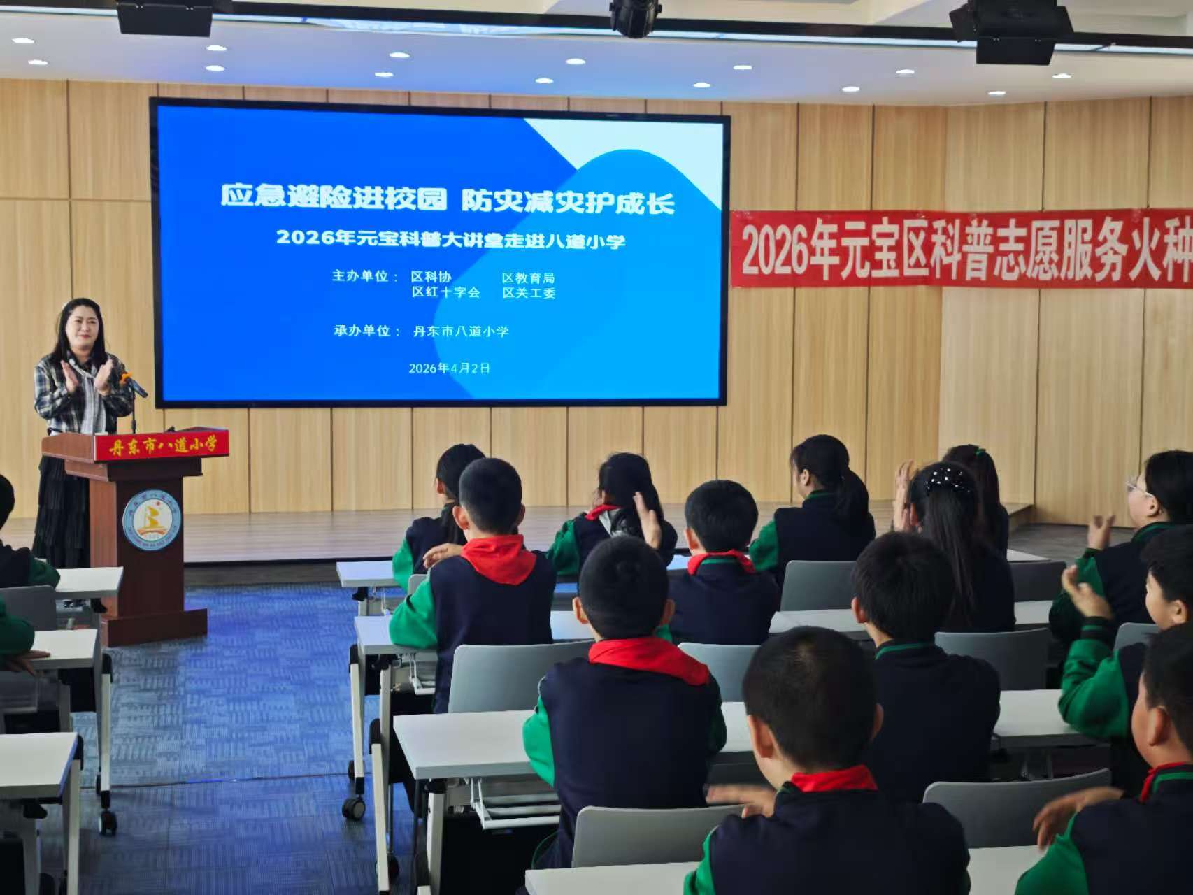 4月2日,丹东市元宝区科协联合区教育局、区红十字会、区关工委等部门走进八道小学,开展以“应急避险进校园,防灾减灾护成长”为主题的科普大讲堂宣讲活动,为100余名师生带来一堂生动实用的安全教育课。旨在切实增强青少年“防灾减灾、应急避险”安全意识,普及应急避险科学知识,提升师生自救互救能力, 活动现场,元宝区红十字会的应急救护培训师崔老师围绕地震逃生、火灾避险、溺水预防、突发事件应对等常见灾害场景,采用图文讲解、案例分析、动画播放、互动问答等趣味形式,用通俗易懂、深入浅出的语言讲解地震、火灾、踩踏等校园及生活常见灾害的成因与防范要点,让学生了解风险危害与规避要点。实操环节重点教授海姆立克急救法,拆解动作要领、示范标准姿势,指导学生模拟练习,确保听得懂、学得会、用得上。活动将安全知识与实操技能有机结合,有效增强了学生自我保护意识,提升了校园应急处置能力,为构建平安和谐校园奠定坚实基础。 此次多部门联动科普活动,搭建了家、校、社协同安全教育平台,将防灾减灾科普知识精准送入校园、融入日常。下一步,元宝区科协将常态化推进应急科普进校园、进社区,不断丰富科普形式、拓宽宣传渠道,厚植青少年安全防范理念,筑牢校园防灾减灾安全防线,全力守护少年儿童健康快乐成长。